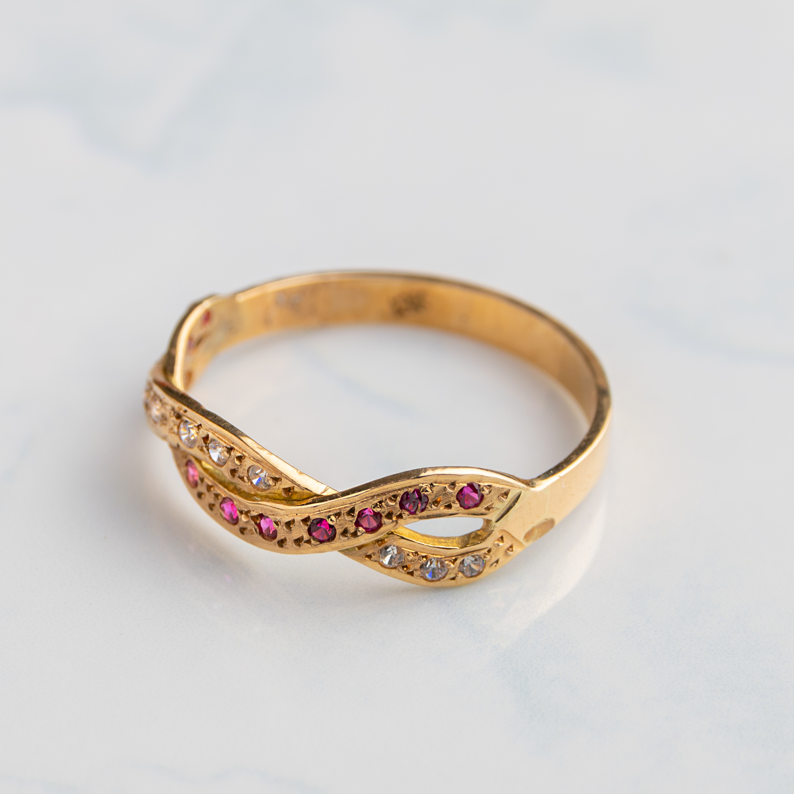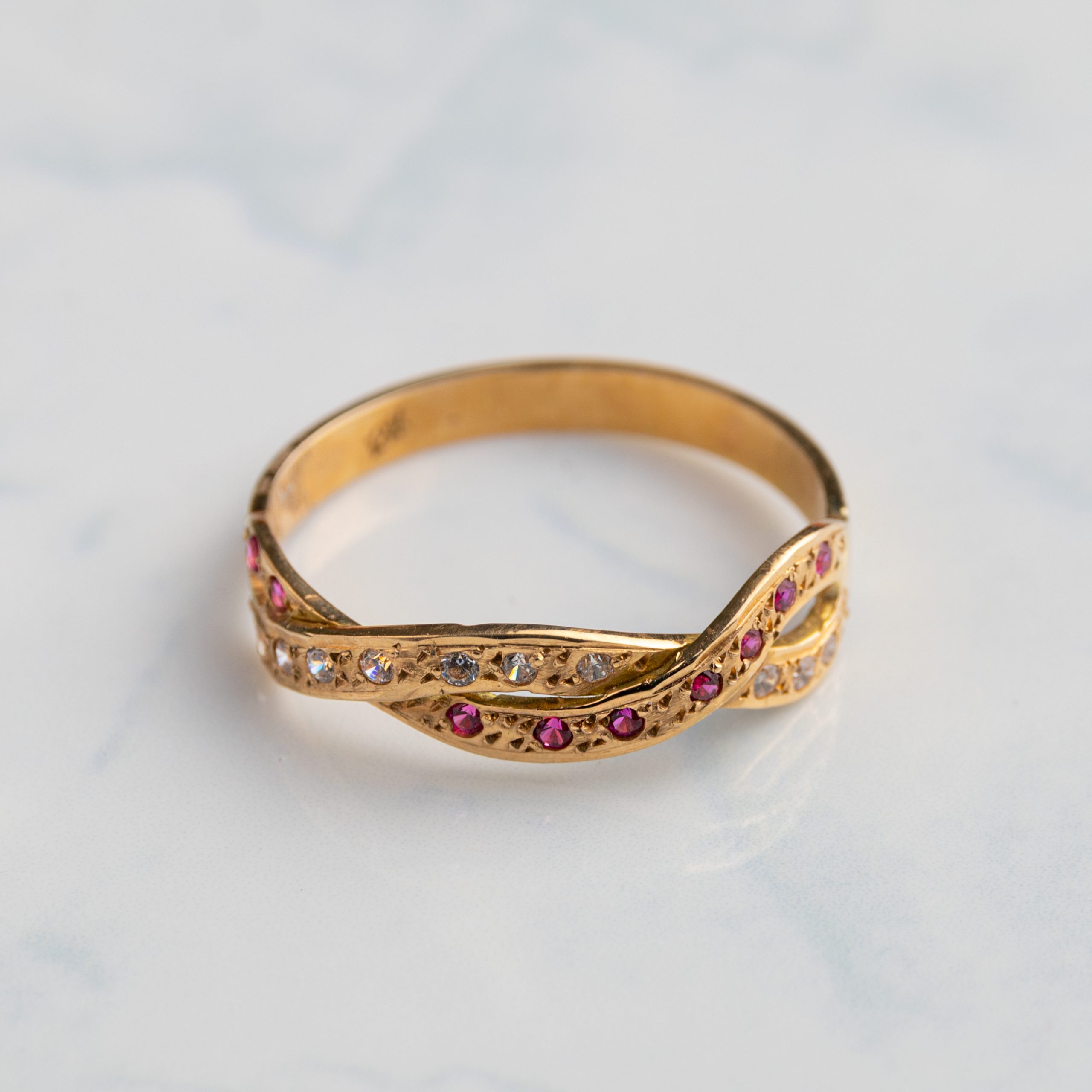 ANILLO CINTILLO CRUZADO BICOLOR